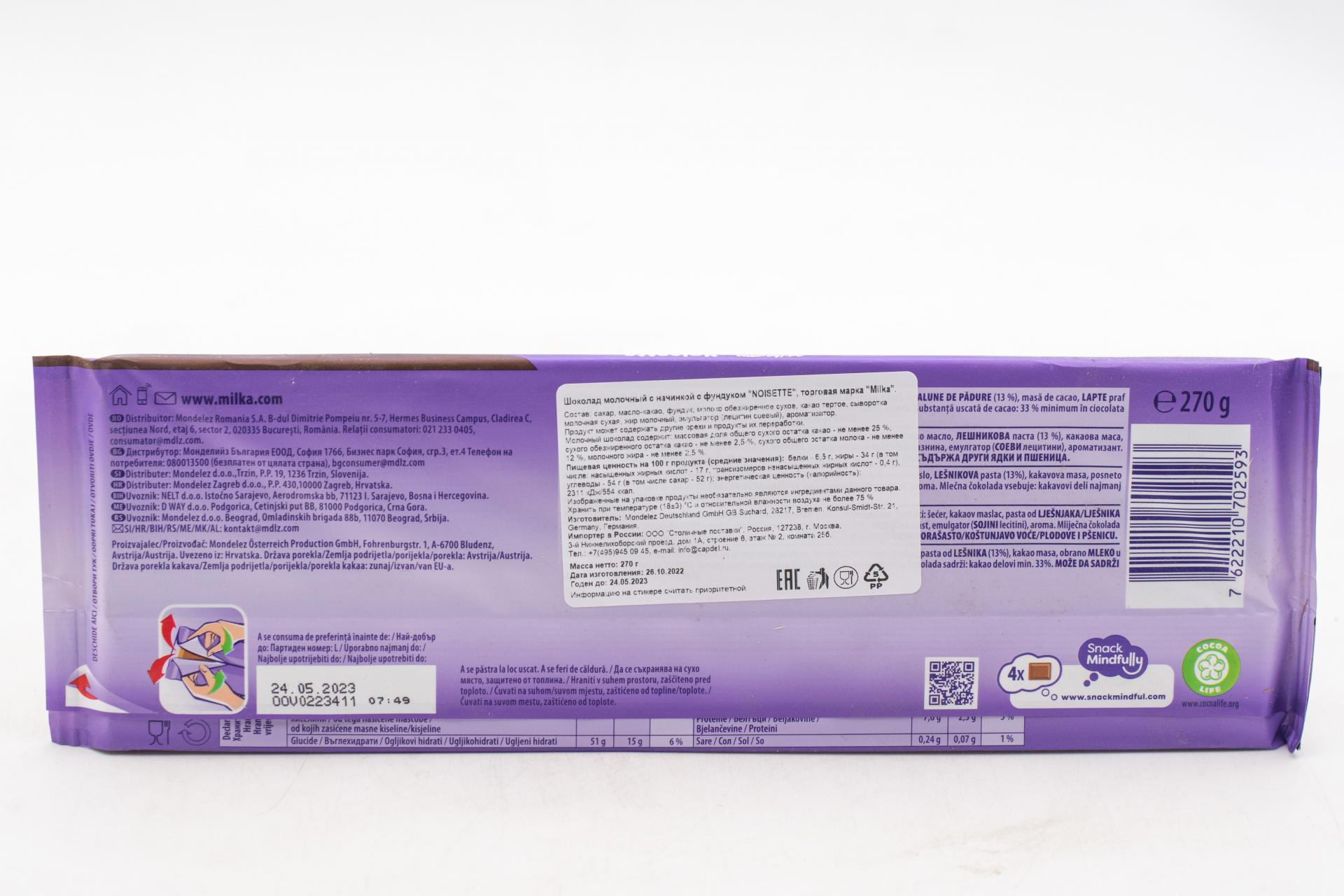Шоколадная плитка MILKA Noisette 270 грамм0,00 руб. за штуку (в упак. 16 шт.) |