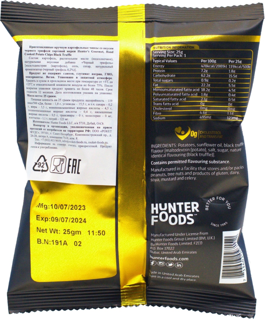 Чипсы Hunter`s Gourmet Black Truffle (Черный трюфель) 25г88,40 руб. за штуку (в упак. 50 шт.) |