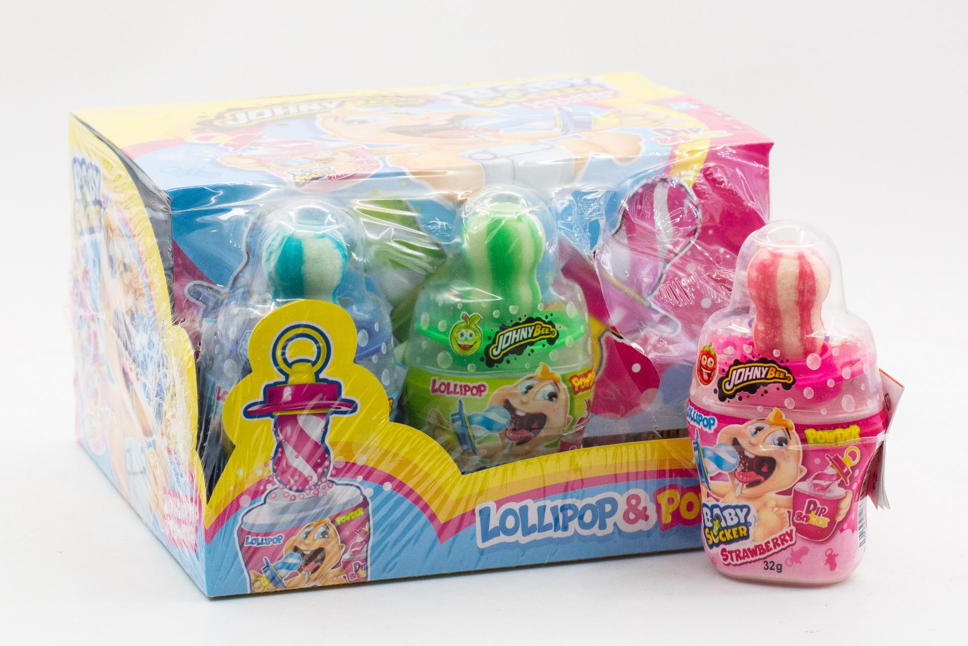 Леденец соска с кислой пудрой Johny Bee Babe sucker 32г107,20 руб. за штуку (в упак. 12 шт.) |