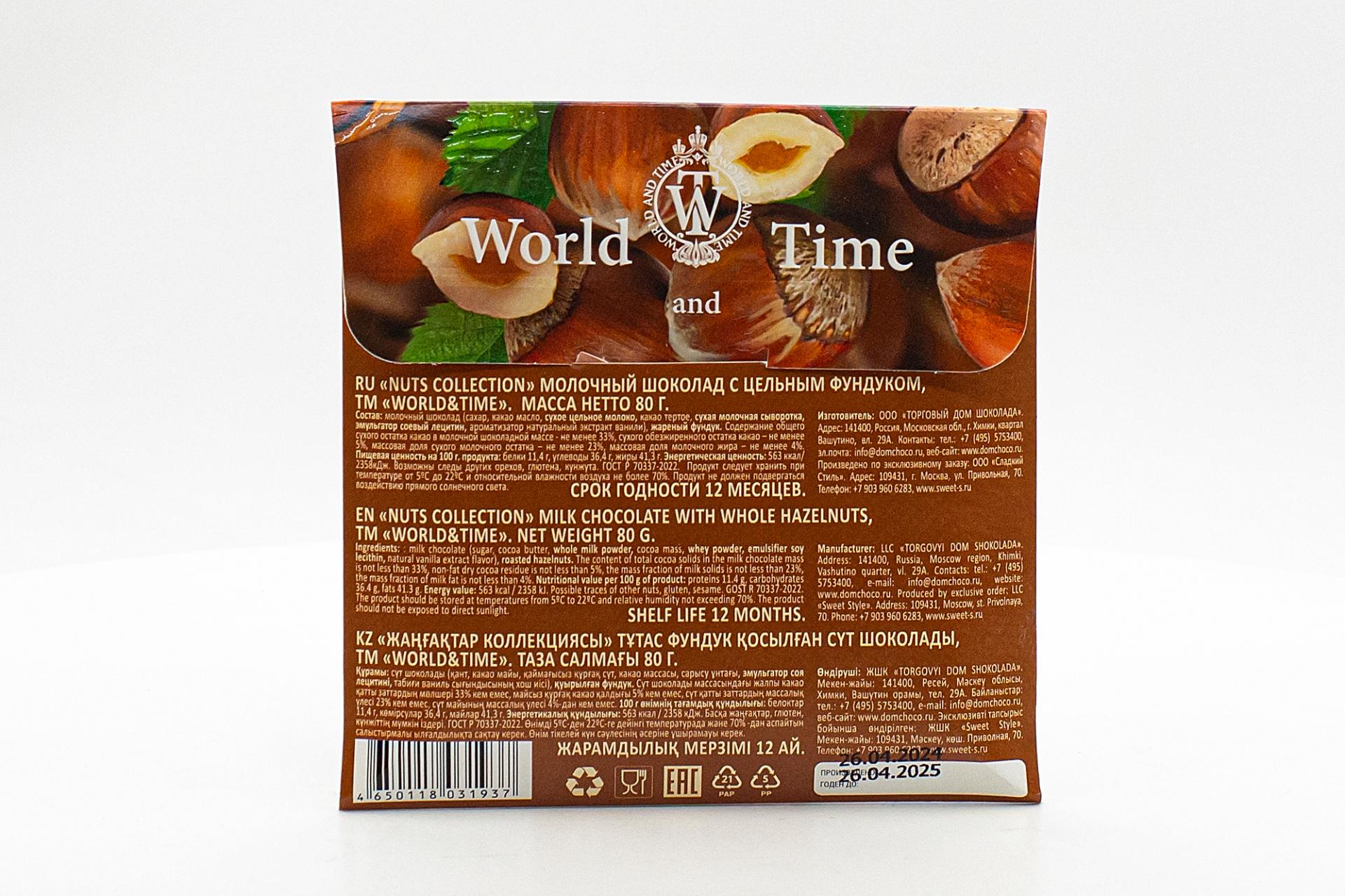Молочный шоколад World&Time Nuts Collection с цельным фундуком 80 гр186,25 руб. за штуку (в упак. 10 шт.) |