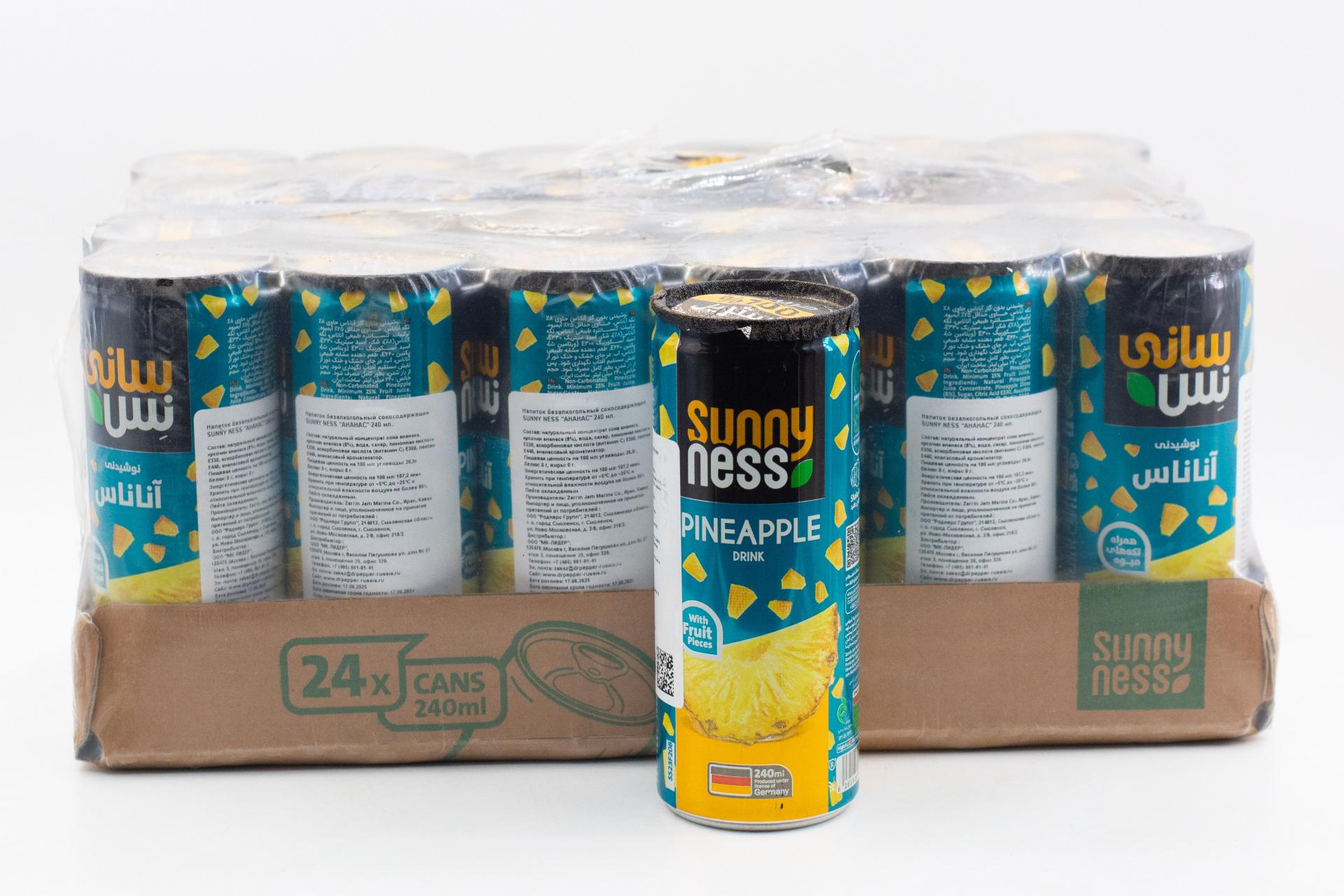 Напиток безалкогольный сокосодержащий Sunny Ness Ананас (Иран) 240мл ж/б62,35 руб. за штуку (в упак. 24 шт.) |