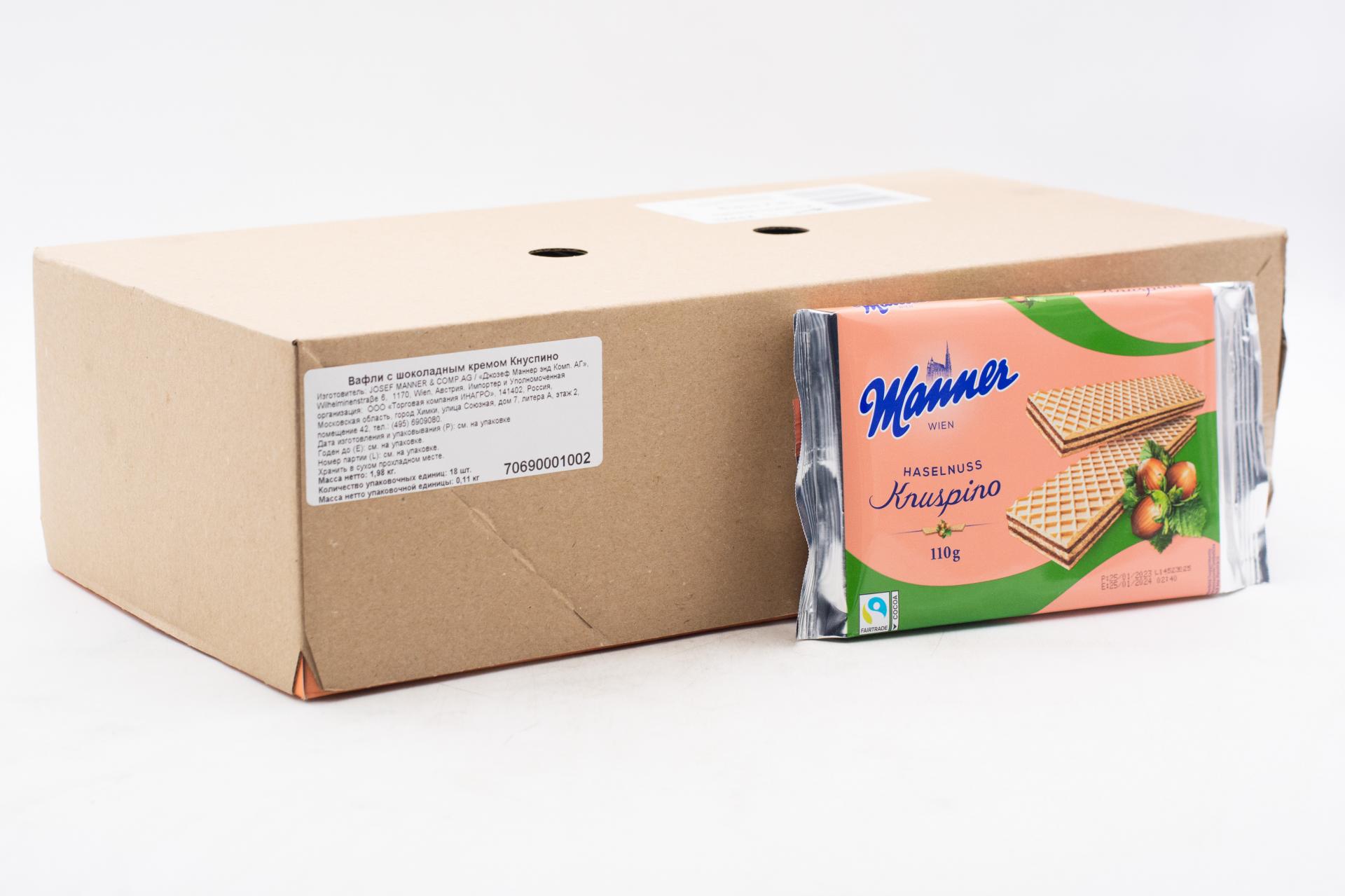 Вафли Manner Knuspino с ореховым кремом 110 гр0,00 руб. за штуку (в упак. 18 шт.) |